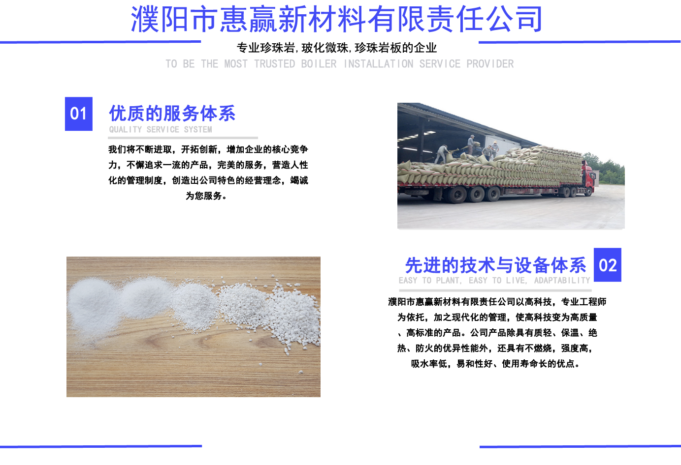 濮陽市惠贏新材料有限責任公司是一家專業(yè)生產(chǎn)保溫材料的廠家,位于范縣王樓鎮(zhèn)工業(yè)區(qū),專業(yè)生產(chǎn)珍珠巖、珍珠巖保溫板、玻化微珠等保溫建材,主要用于外墻保溫、屋面保溫、園藝等領域,產(chǎn)品暢銷國內(nèi)外,深受客戶一致好評。我們擁有優(yōu)秀的產(chǎn)品和服務,在成立以來都以誠信對待客戶! 公司擁有各類專業(yè)人才,技術人員50人,運輸40人,專業(yè)的十多輛運輸車輛。產(chǎn)品銷售網(wǎng)絡遍及國內(nèi)20多個省市,十幾年來,通過公司的不懈努力和誠信經(jīng)營理念,產(chǎn)品質(zhì)量可靠,價格合理,深受廣大客戶認可和好評! 我公司本著以客戶為本,客觀實際,創(chuàng)新發(fā)展的原則,在追求完美極致的道路上努力打造行業(yè)新標準,我公司憑借卓越的產(chǎn)品質(zhì)量、完善的服務標準、良好的口碑信譽、竭誠歡迎廣大客戶前來洽談業(yè)務!...